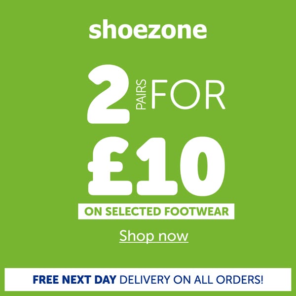 Ready to refresh your footwear without breaking the bank? Head to Shoezone now and grab 2 pairs for just £10! But be quick, this deal won’t stick around for long!