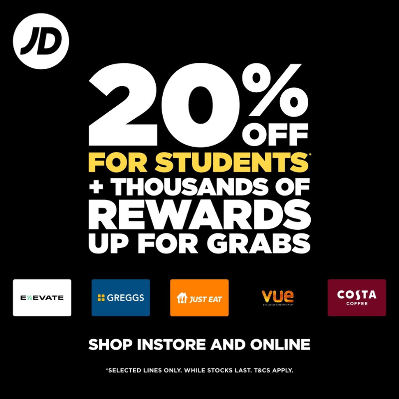 Big time student savings have hit JD. We’re talking 20% off Nike, adidas, The North Face. The list goes on.