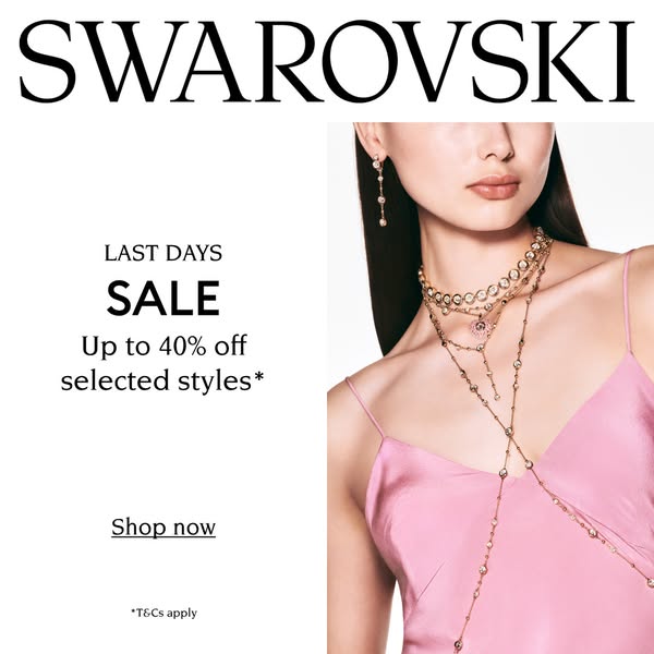 It’s your last chance to get 40% off selected styles at Swarovski, not to be missed!