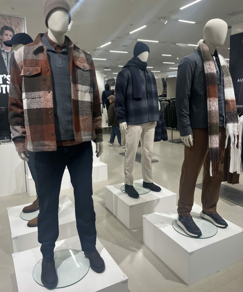 The right accessories can make all the difference. Pop into River Island or Mango for cosy scarves and on-trend bags – perfect for shopping trips and festive outings alike. For a touch of luxury, visit All Saints for soft woollen hats, scarves and gloves that combine warmth and style.