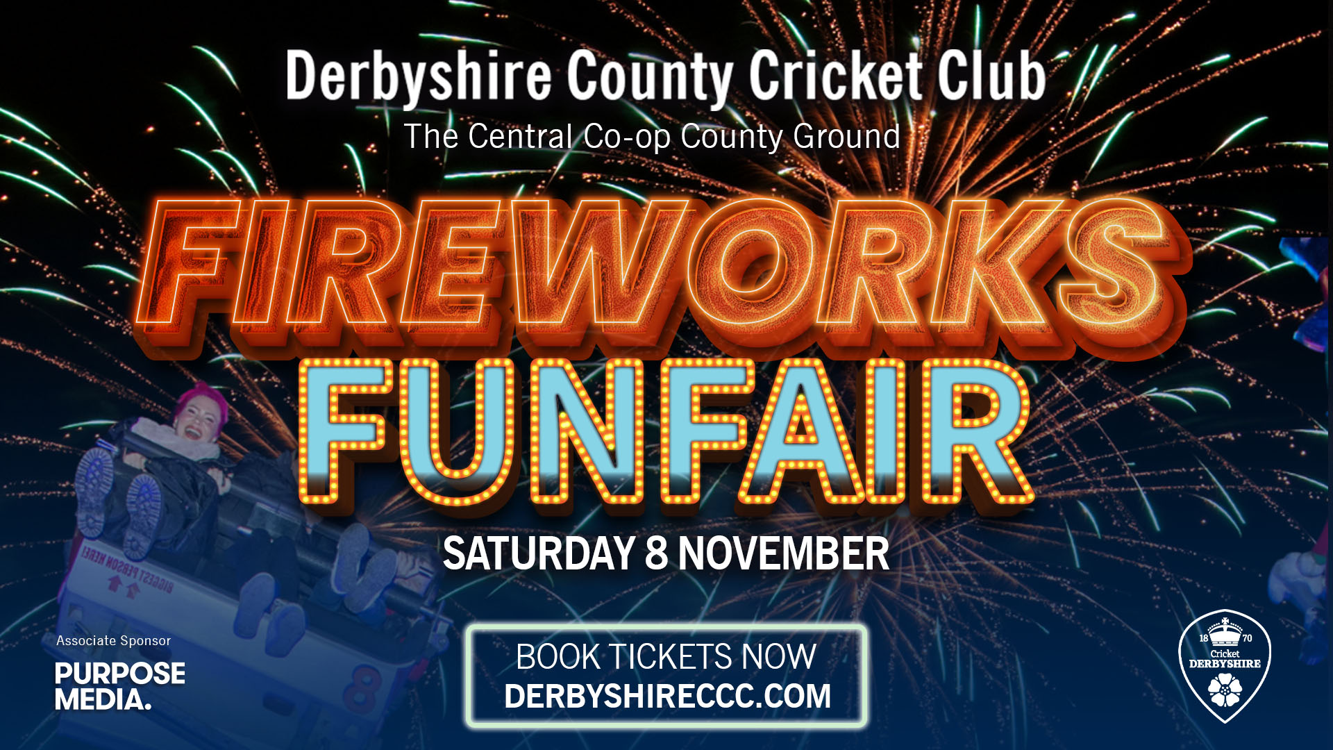 Derby’s biggest Fireworks Night is back at The Central Co-op County Ground on Saturday 8 November 2025!